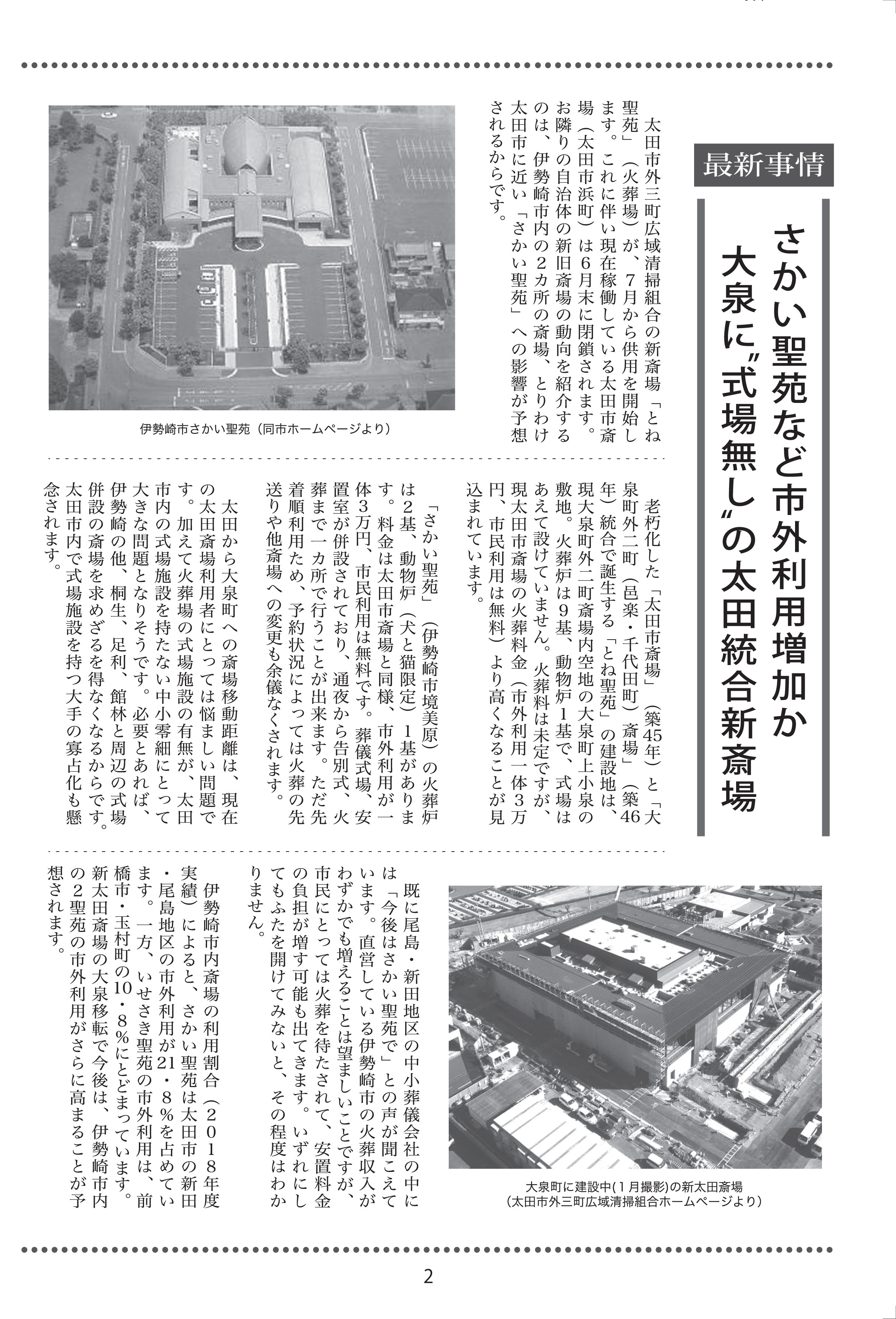 さかい聖苑など市外利用増加か 大泉に“式場無し‶の太田統合新斎場(2面)