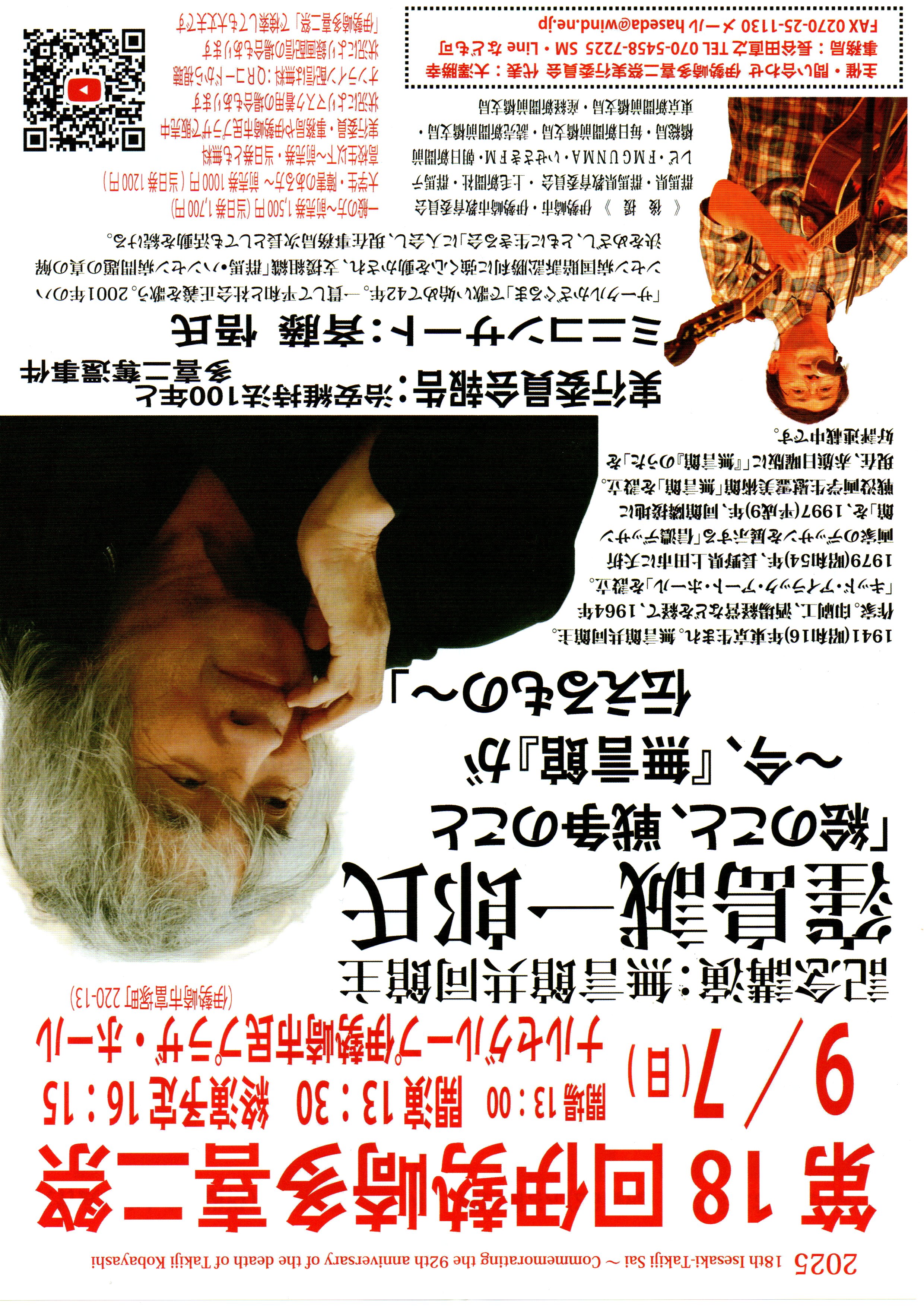 開催日時:9月7日(日)午後1時30分開演/4時15分終了予定