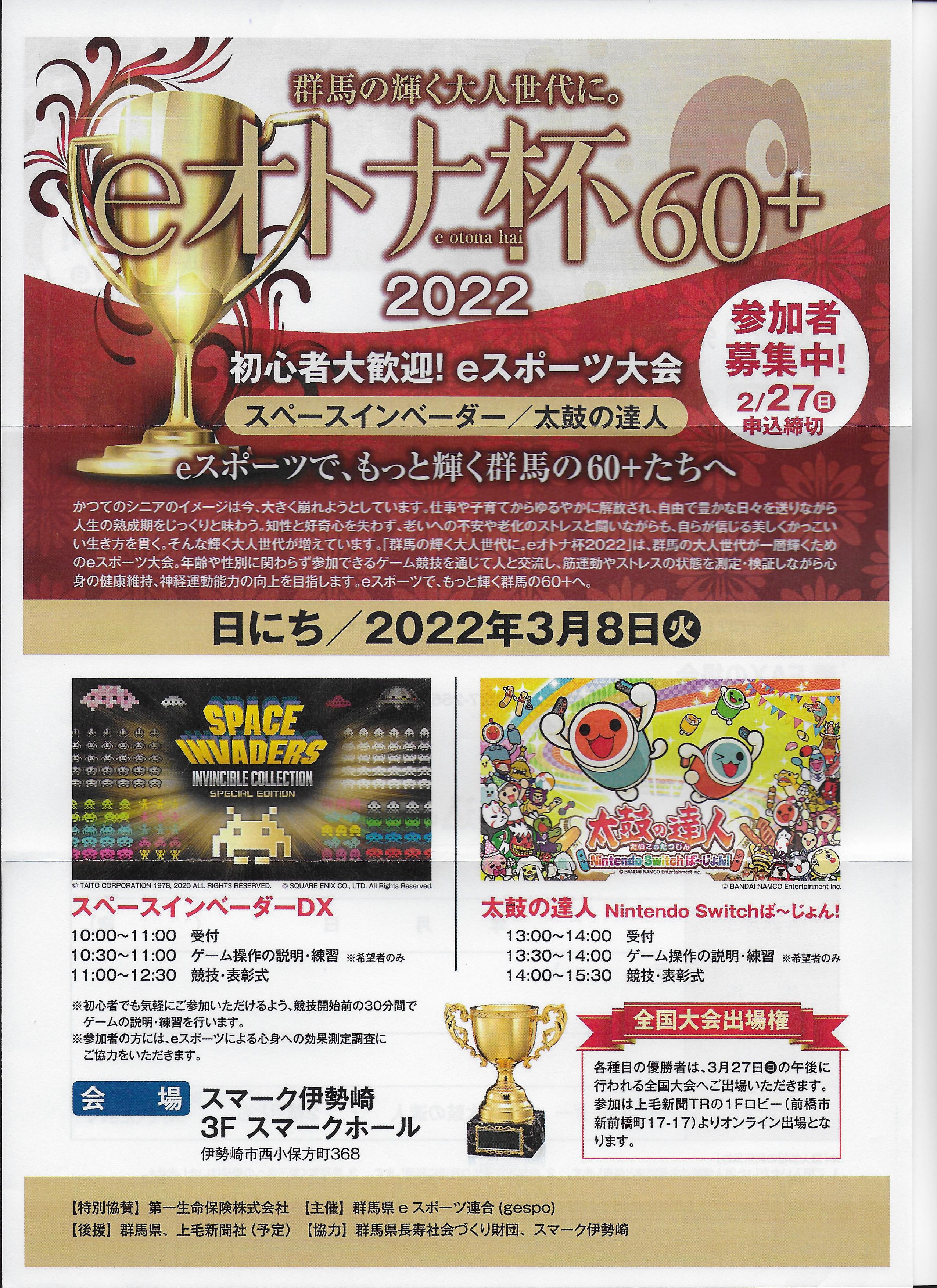初心者大歓迎!eスポーツ大会「eオトナ杯60+2022」