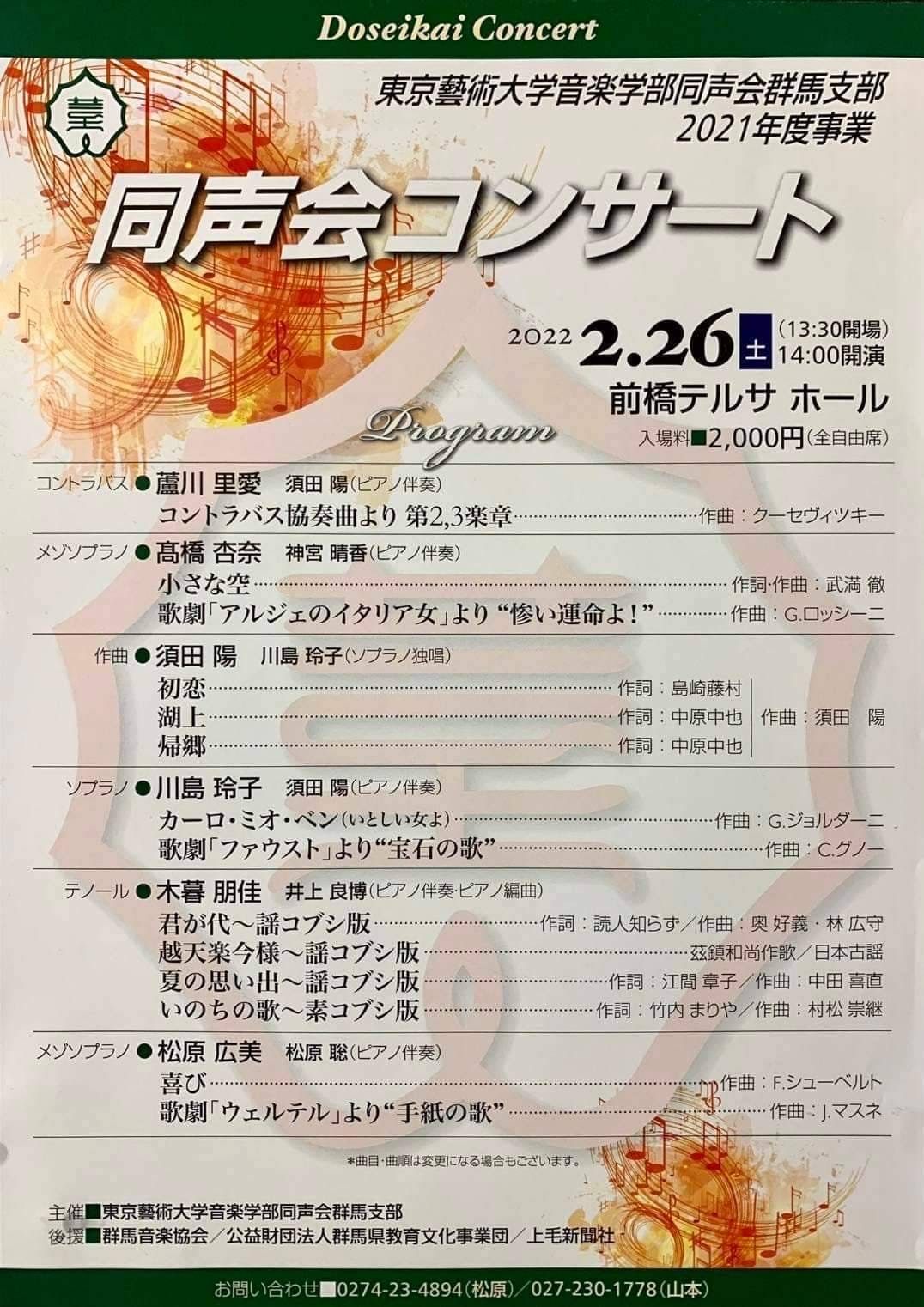 「同声会コンサート」東京藝術大学音楽部同声会群馬支部