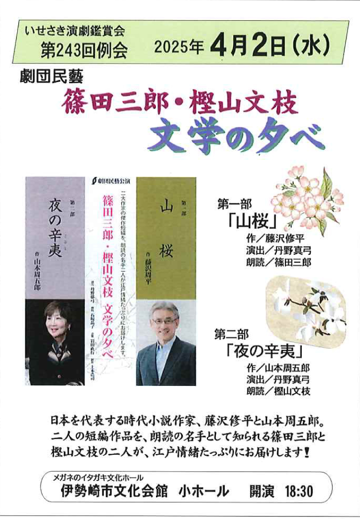 「山桜」藤沢周平作/「夜の辛夷」山本周五郎作を朗読