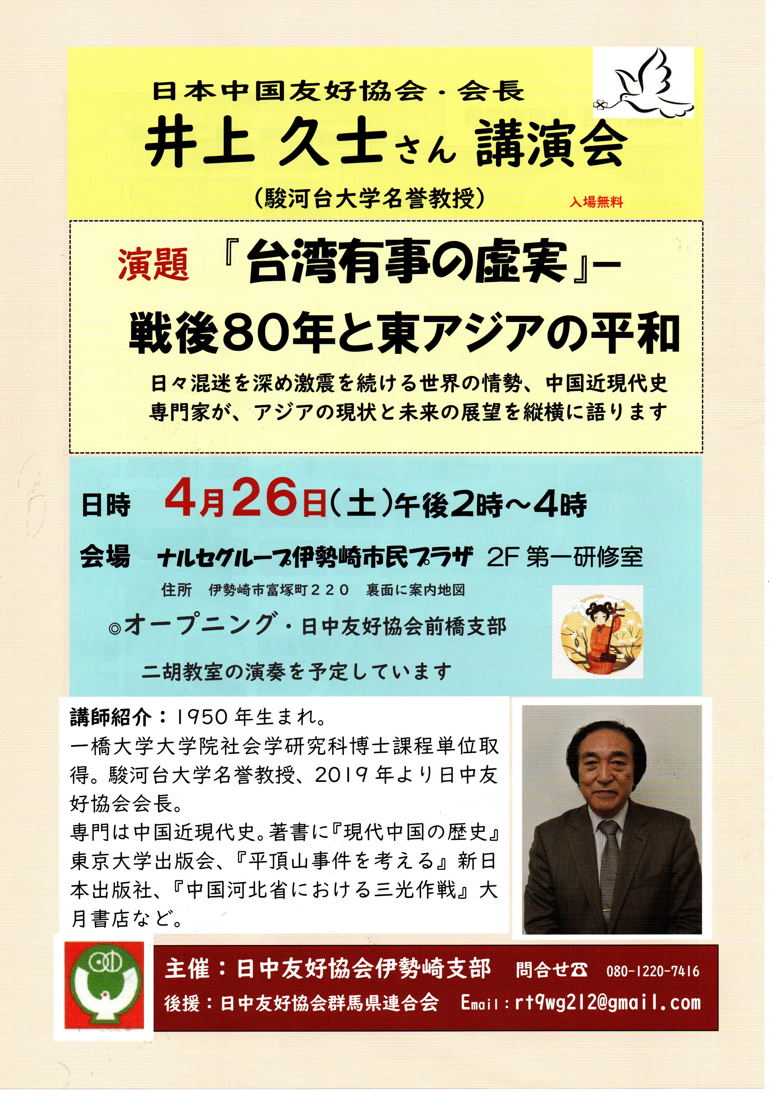 日本中国友好協会の井上久会長(駿河台大学名誉教授)
