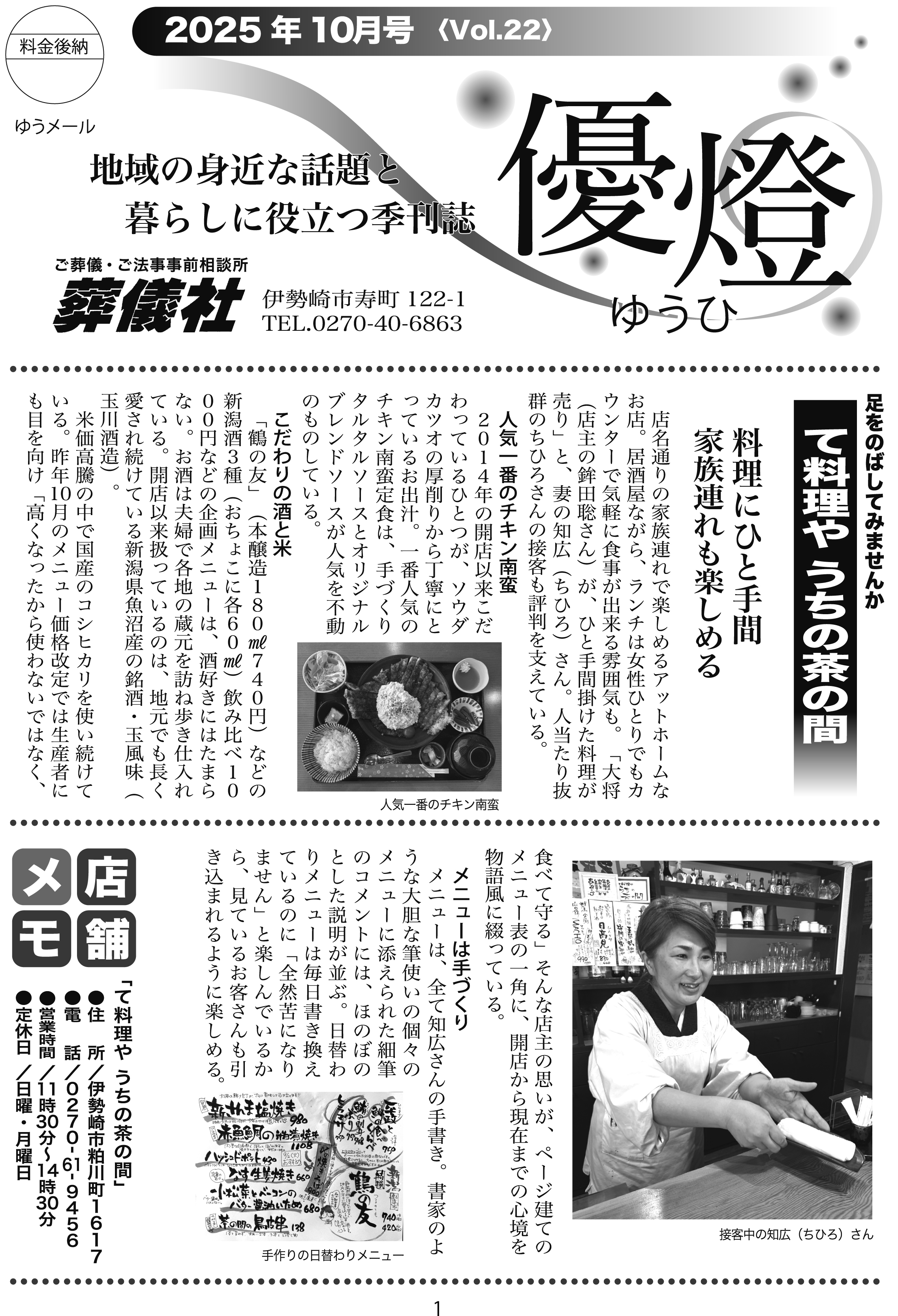 地域の話題と暮らしの季刊誌「優燈」2025年10月号(Vol22)