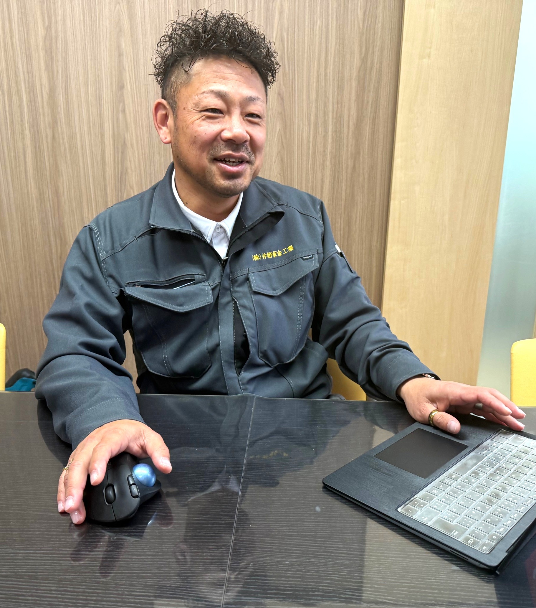 板金加工を営む井野板金工業が得意としているのは、大型倉庫や工場の屋根などの施工。最大加圧13トンで板金を折り曲げる油圧ベンダーなどの設備投資で、加工精度や生産性を向上させている。旺盛な受注に対応して本社工場近くに、新たに340坪の第2工場用地を取得。数年後には施工能力を倍増させる。2020年に伊勢崎青年会議所の理事長を務めた二男の伯俊副社長は積算、末弟の専務が現場と営業を担い、自らも現場と営業をこなしつつ全体を統括。大まかな役割分担のもと、兄弟による”3本の矢”経営が会社の強みになっている。