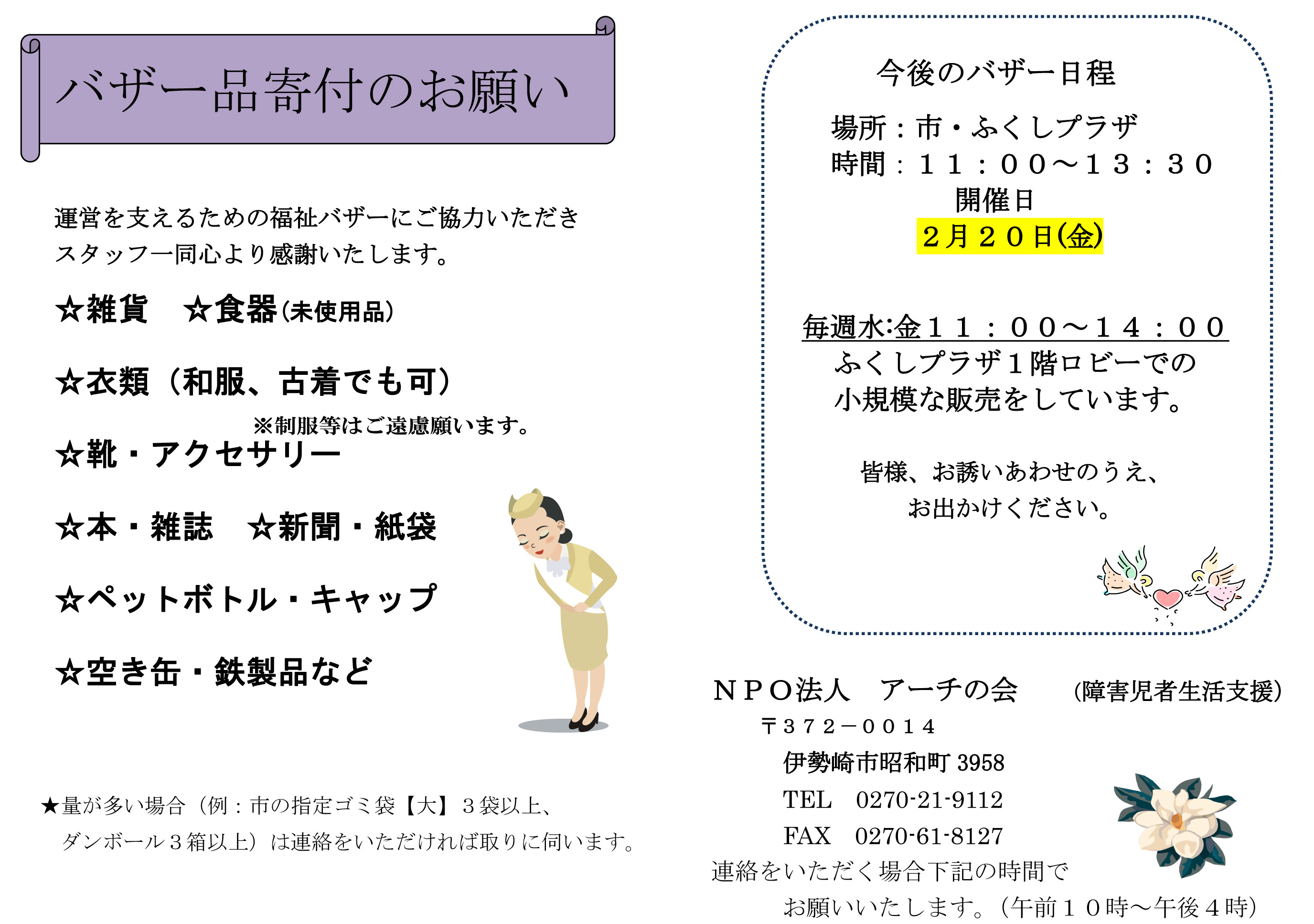 市民ふくしプラザのバザーのお知らせ