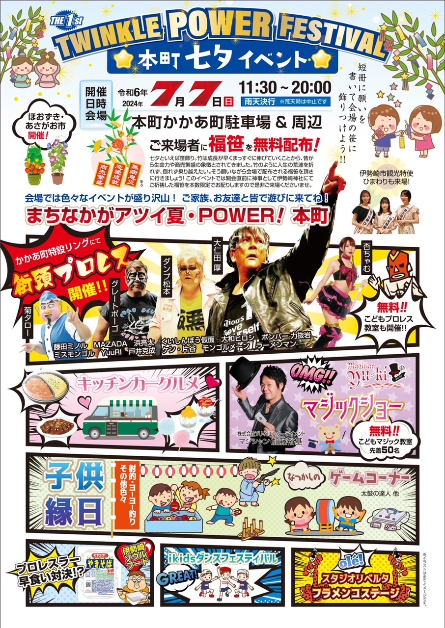 街頭プロレス 大仁田厚、ダンプ松本参戦など/本町七夕イベント