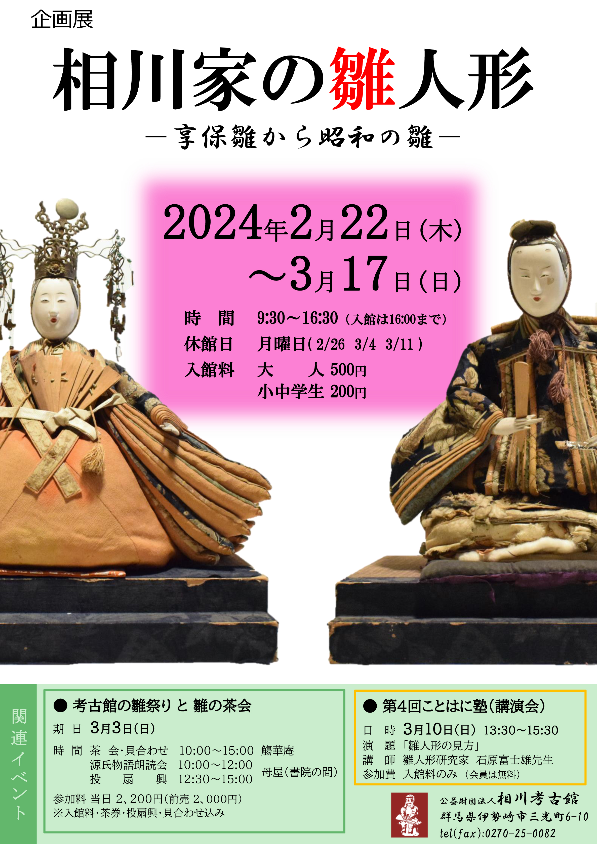 関連催事:3月3日雛の茶会/3月10日ことはに塾(講演会)