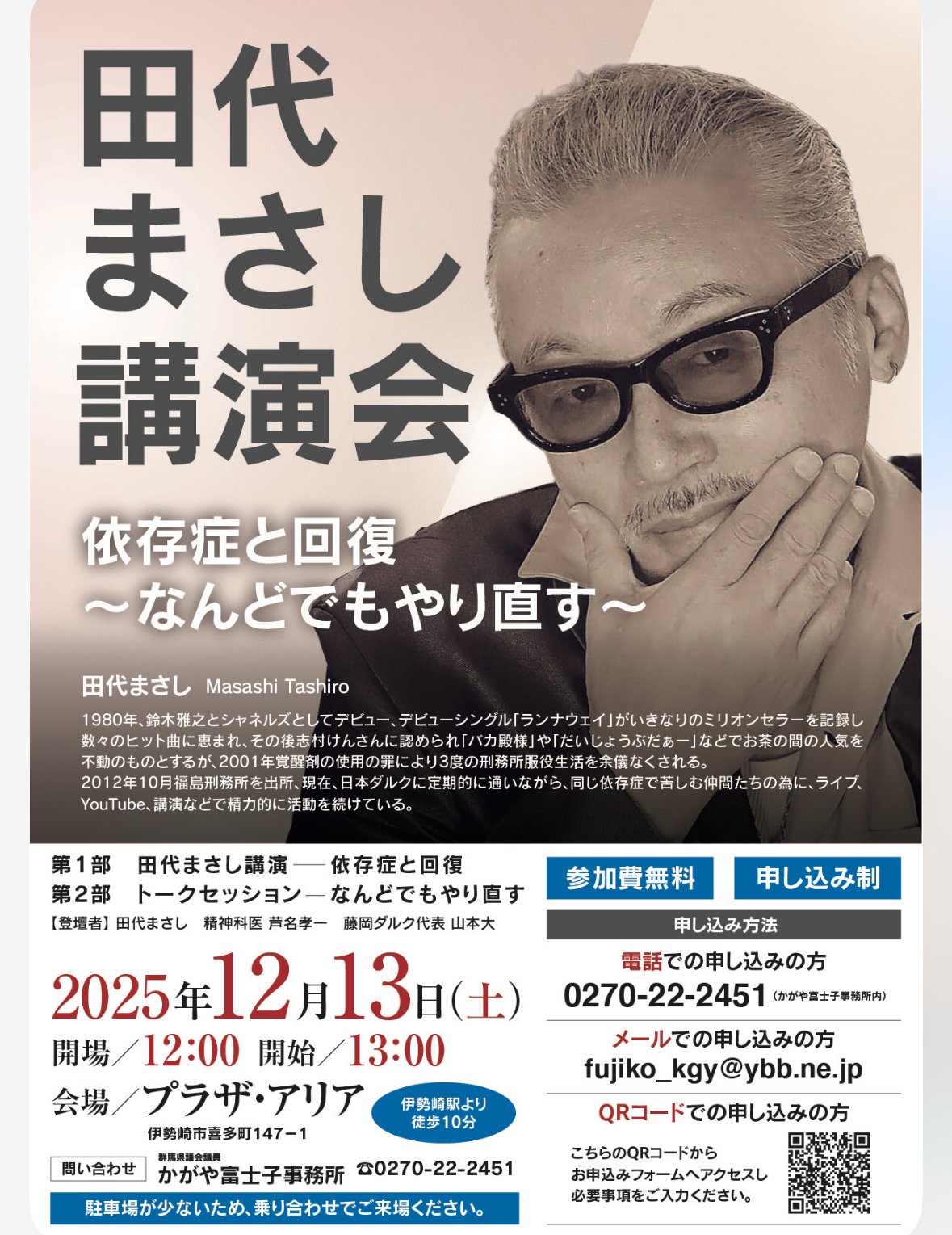 田代まさし講演会「依存症と回復〜なんどでもやり直す〜」