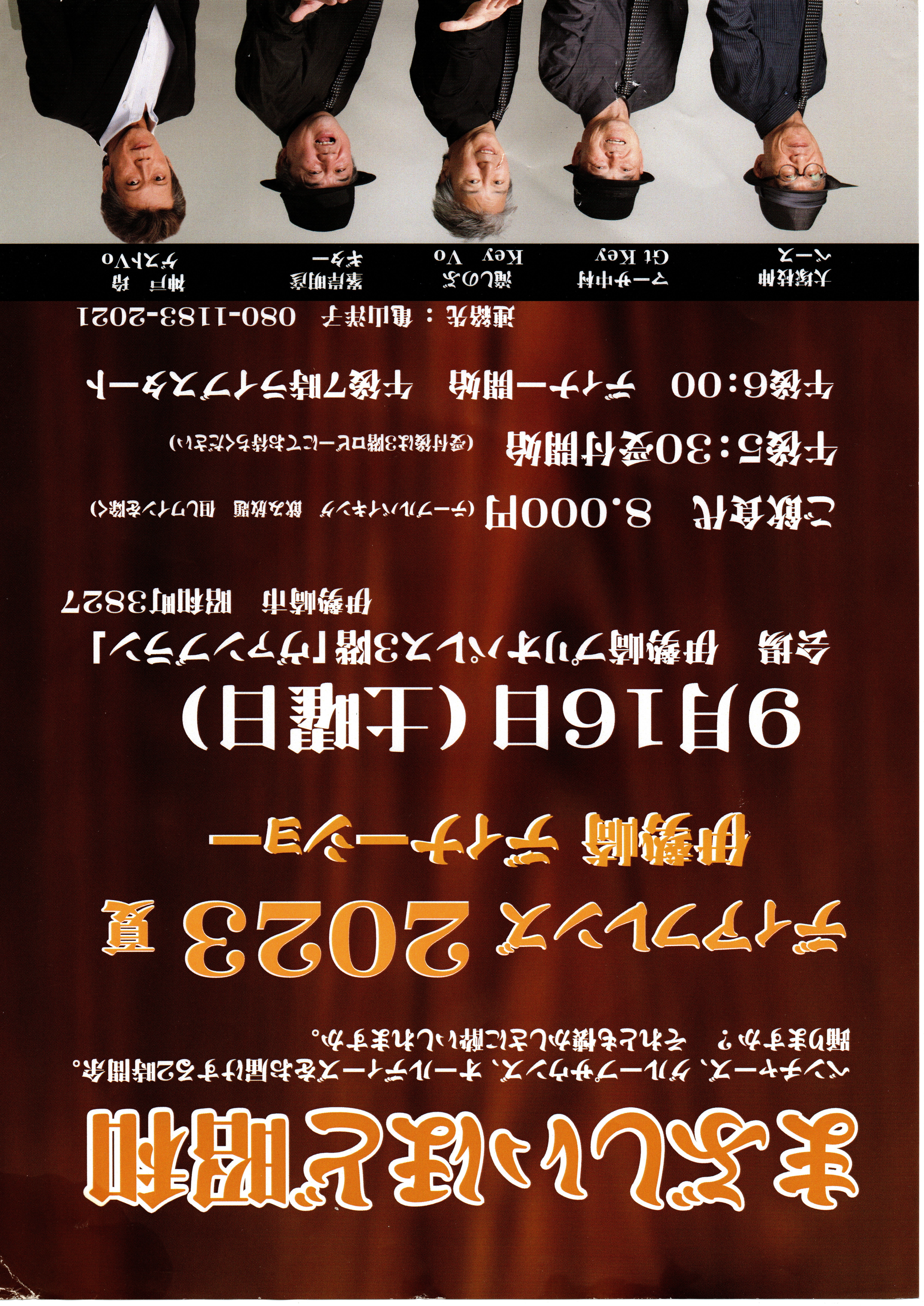 開催日時:9月16日(土曜日)午後6時ディナー・7時ライブ開始