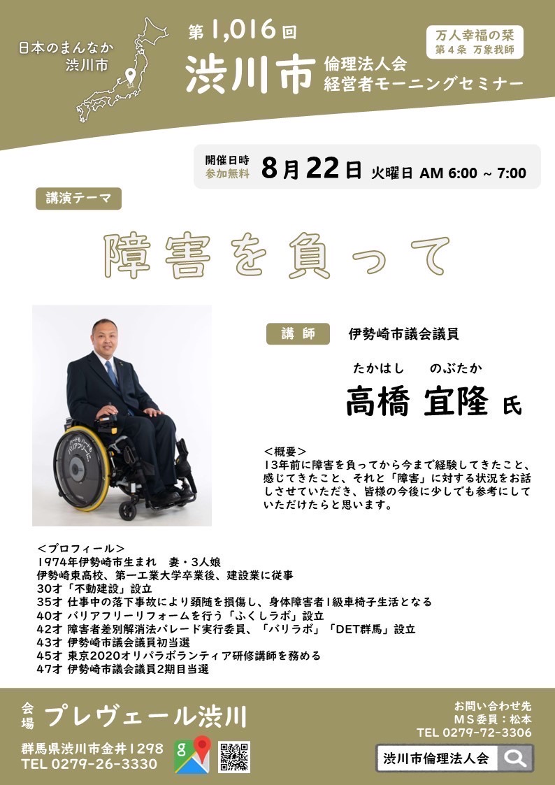 伊勢崎市議会議員 高橋宣隆さん講演「障害を負って」
