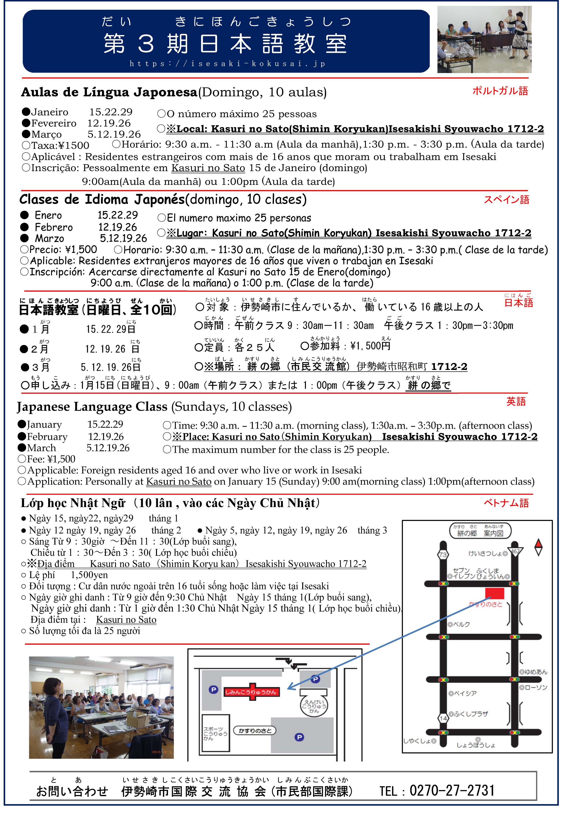 問合せ:伊勢崎市国際交流協会(市民部国際課 0270−27−2731)