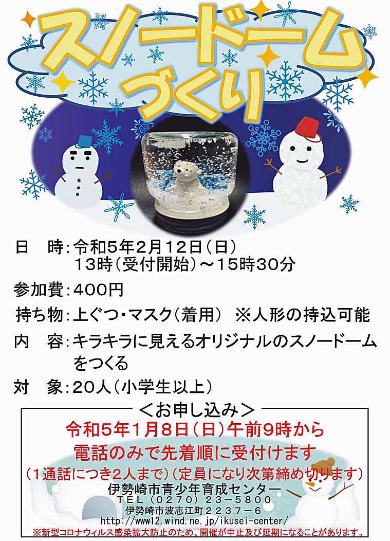 申込:2023年1月8日午前9時から電話先着順(0270-23-5800)