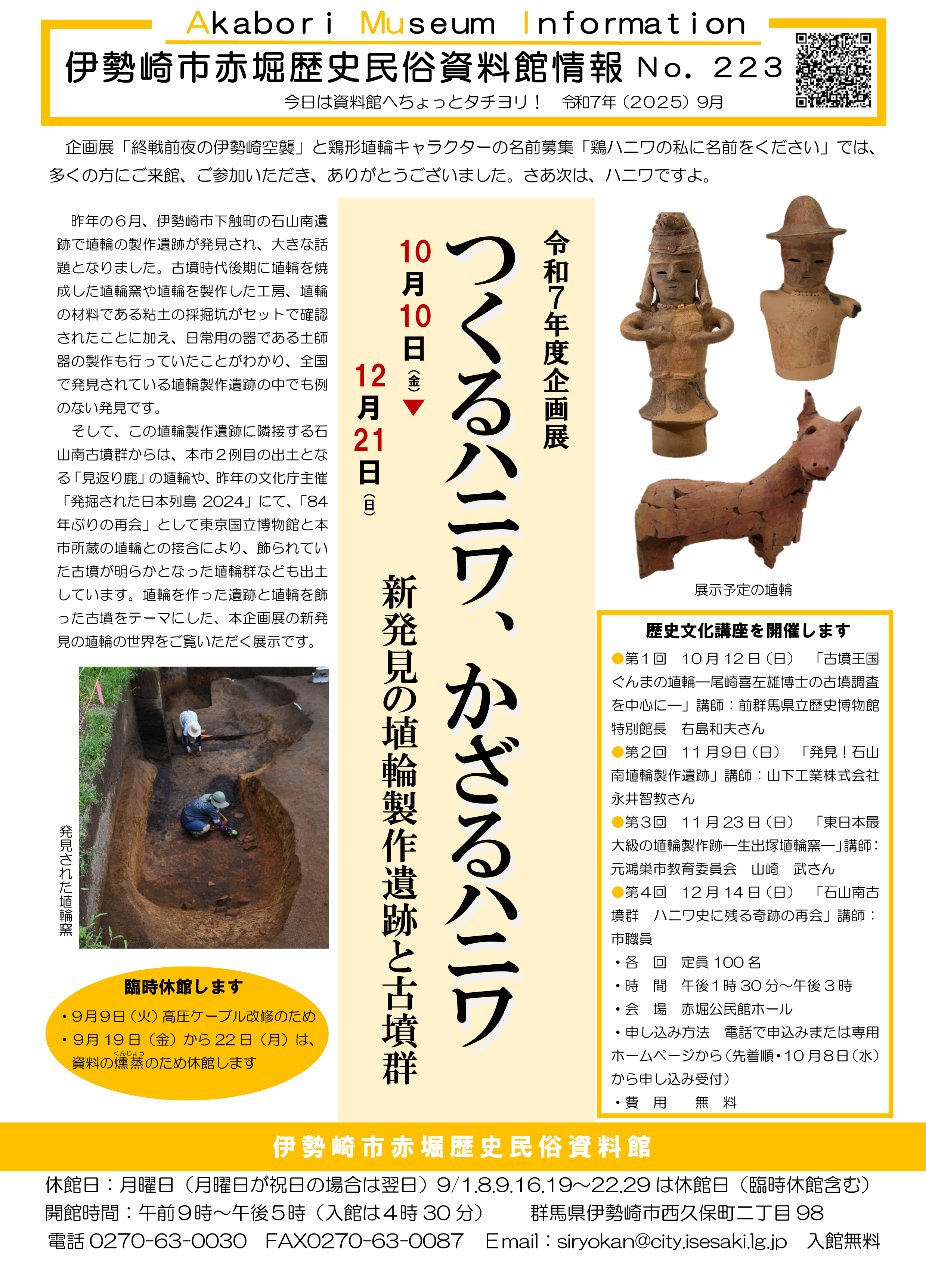 伊勢崎市で新発見の埴輪を作った遺跡と埴輪を飾った古墳がテーマ