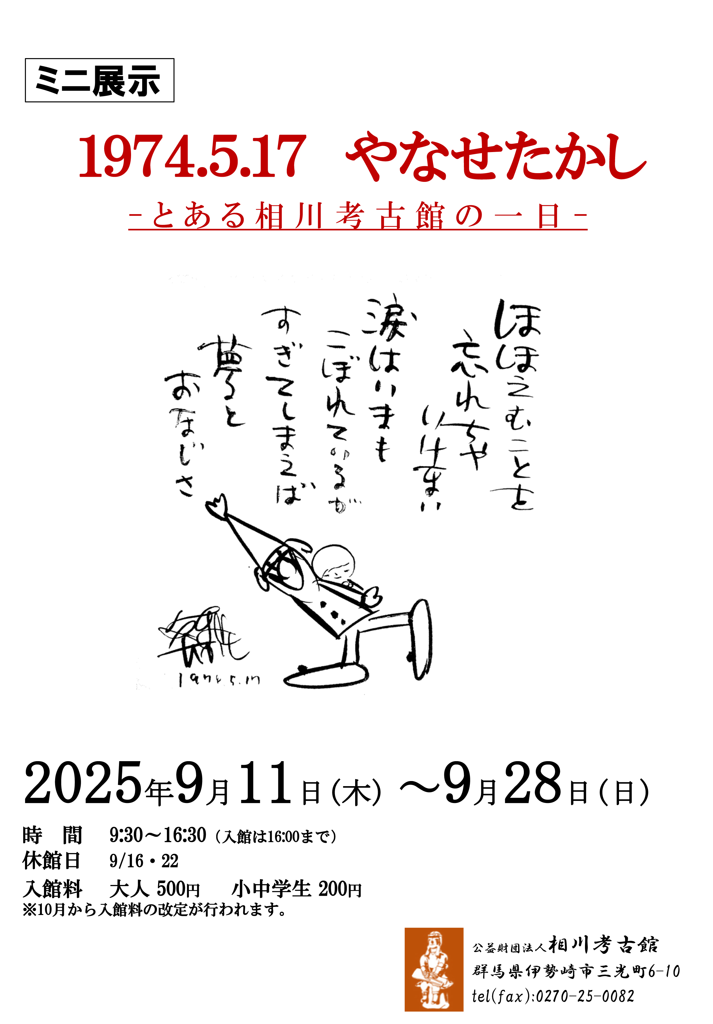 会場・主催:公益財団法人 相川考古館(伊勢崎市三光町6-1)