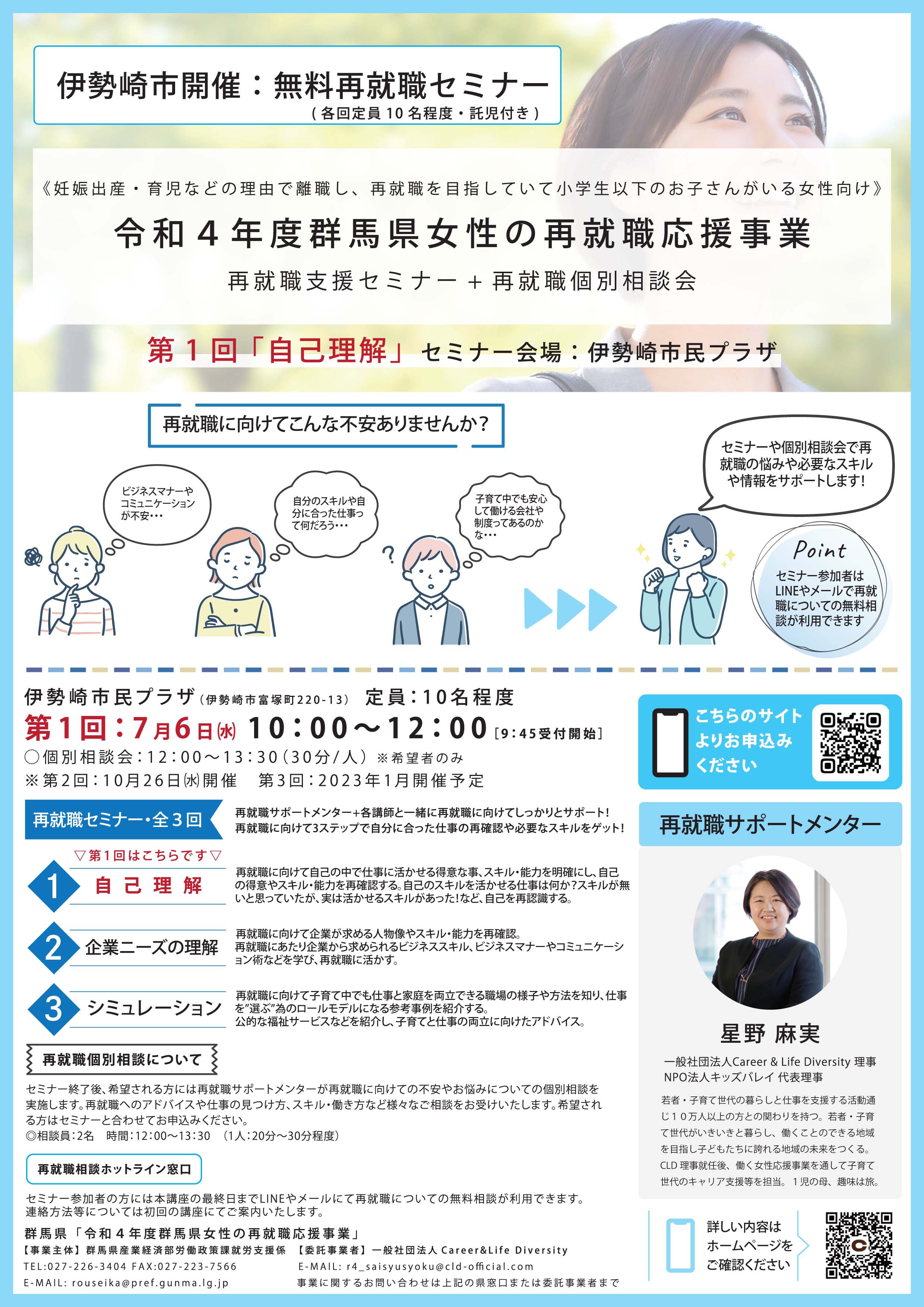 群馬県女性の再就職支援セミナー(全3回)+再就職個別相談会