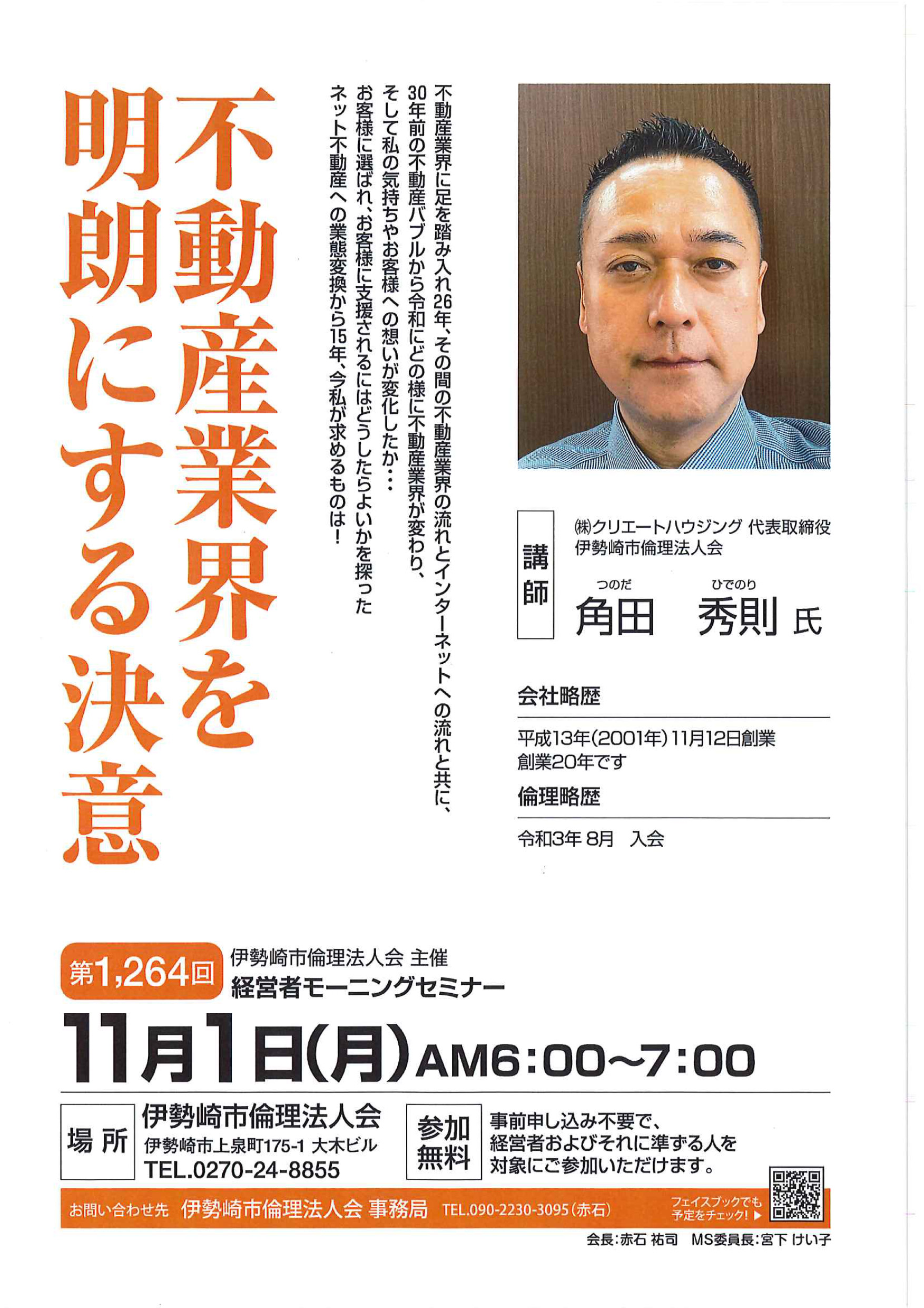 経営者モーニングセミナー「不動産業界を明朗にする決意」