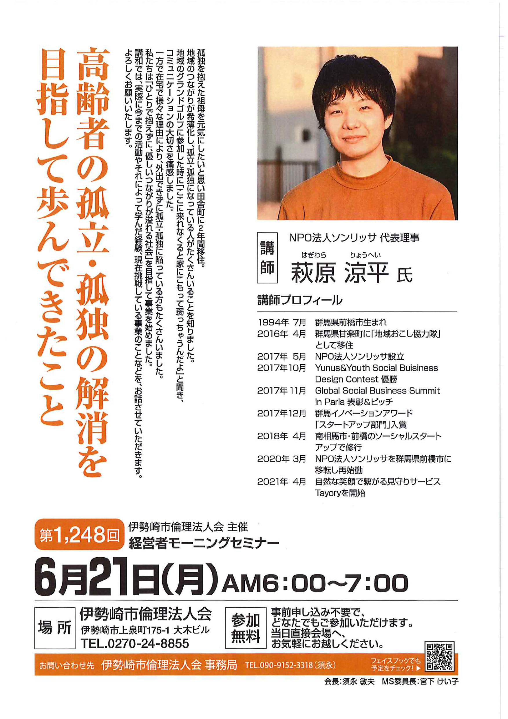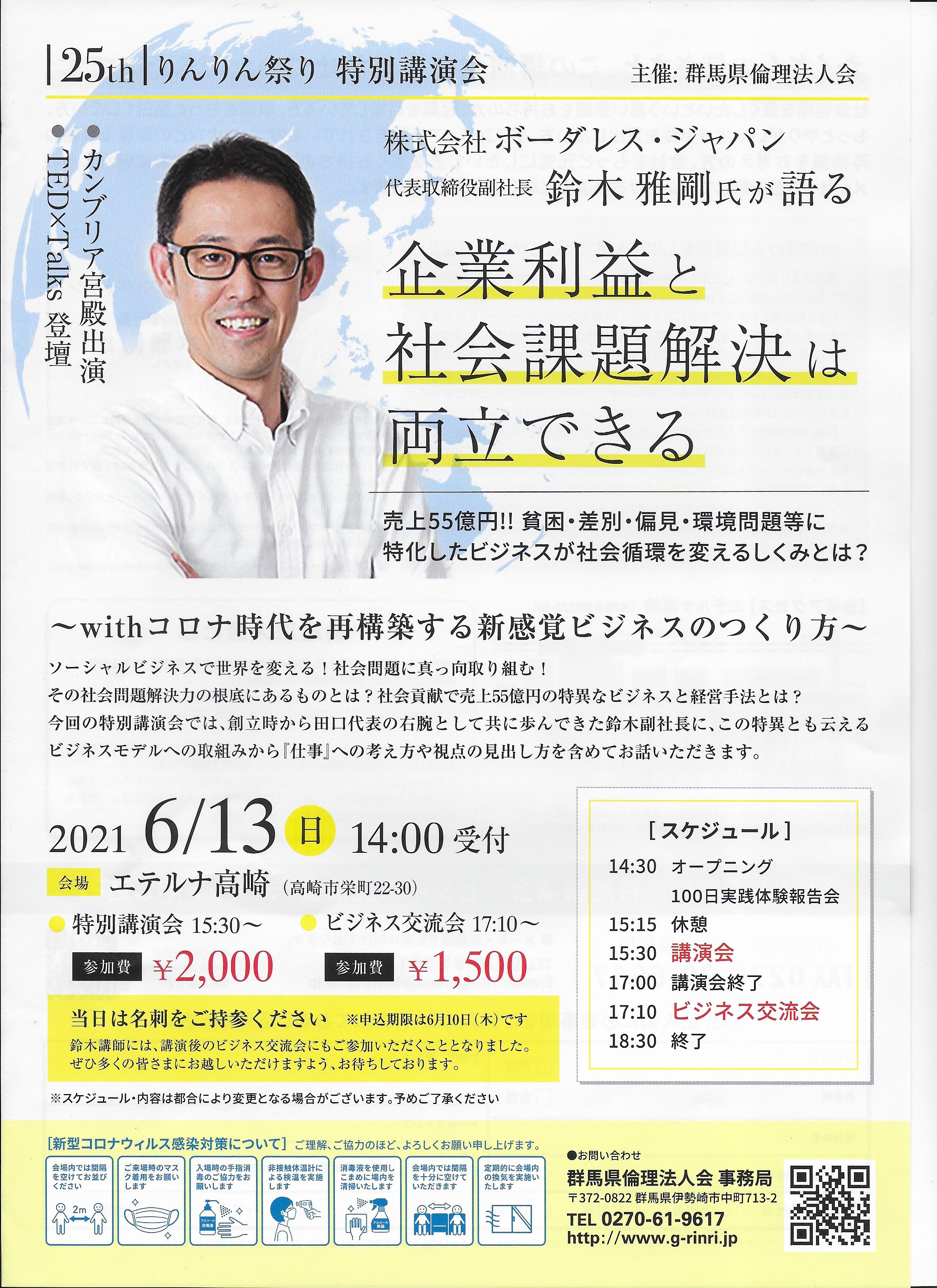問合せ:群馬県倫理法人会(伊勢崎市中町