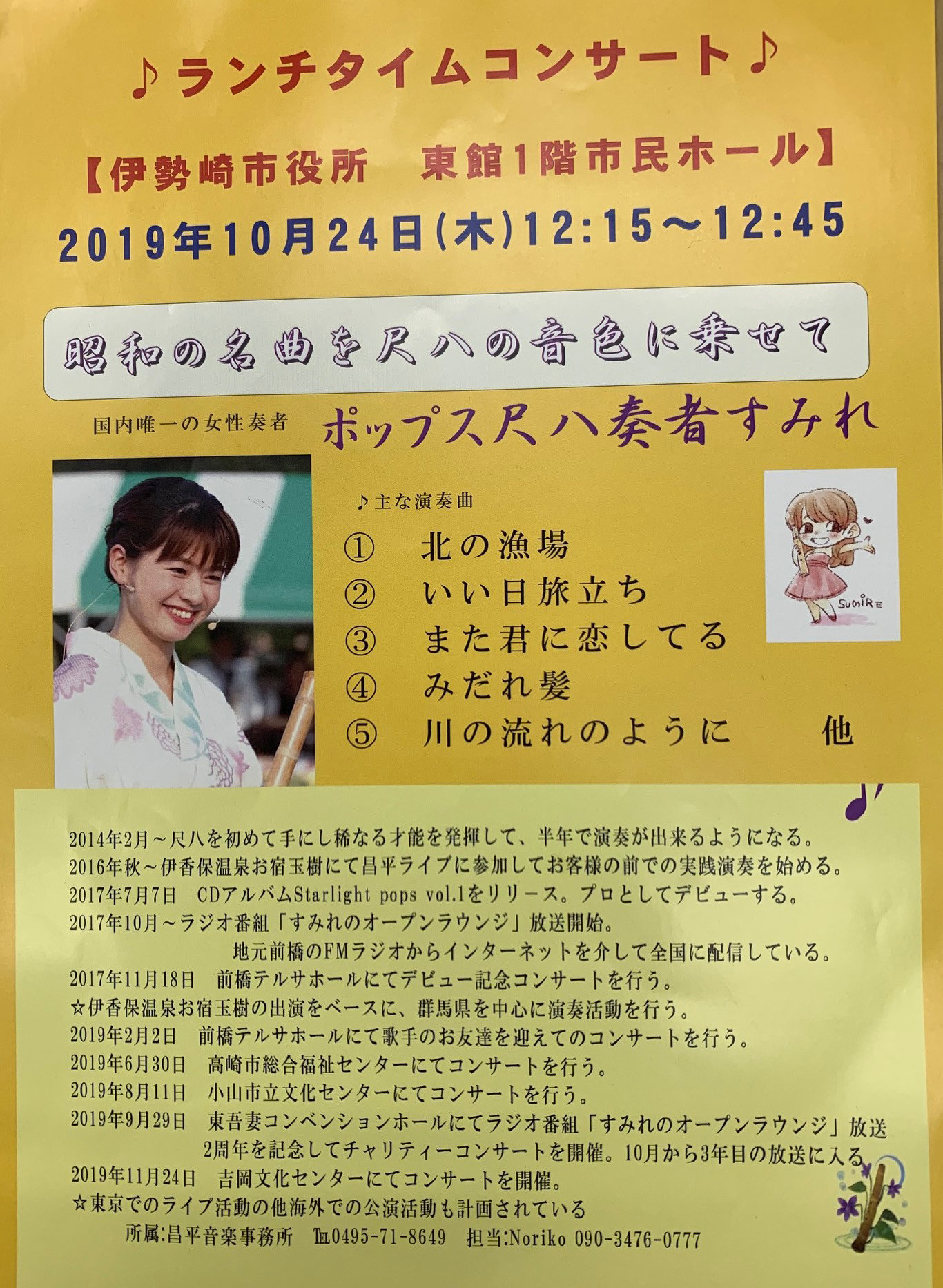 10月24日「昭和の名曲を尺八の音色に乗せて」