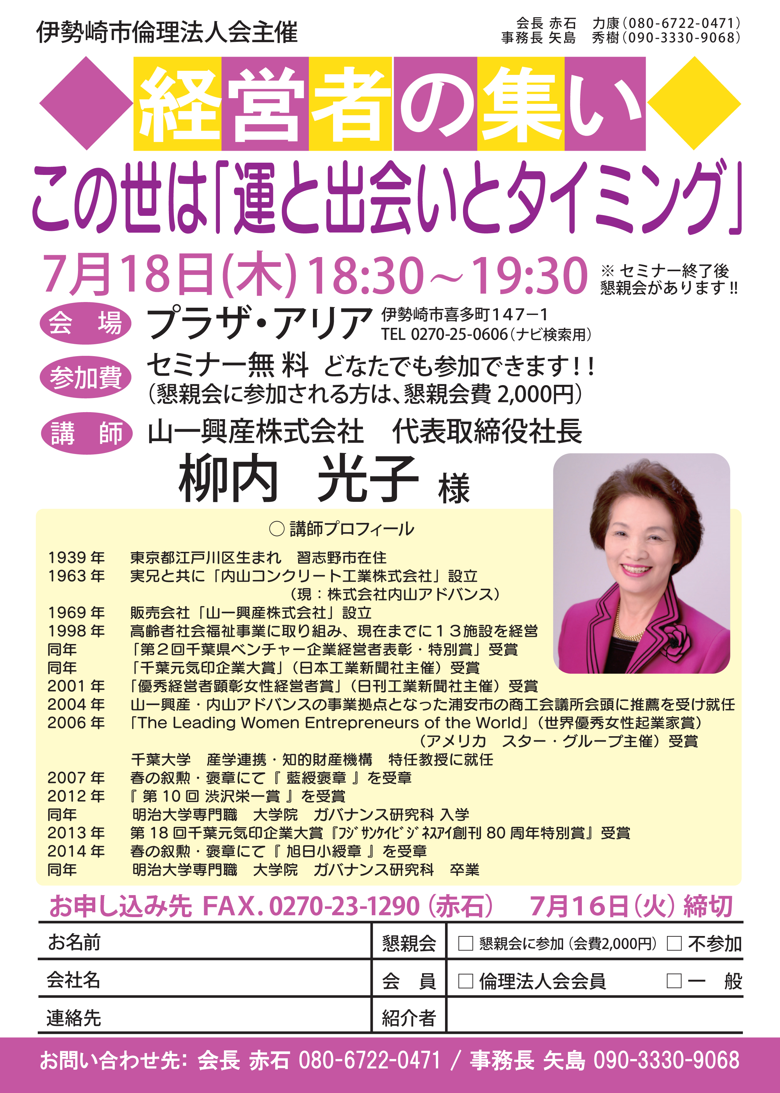 7月18日「経営者の集い」伊勢崎市倫理法人会主催